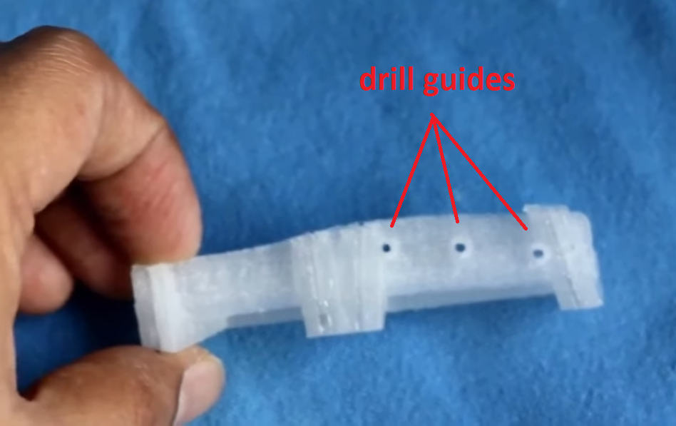 - Make a fixation plate 3D model and corresponding well-placed kirschner wires (cylinders).