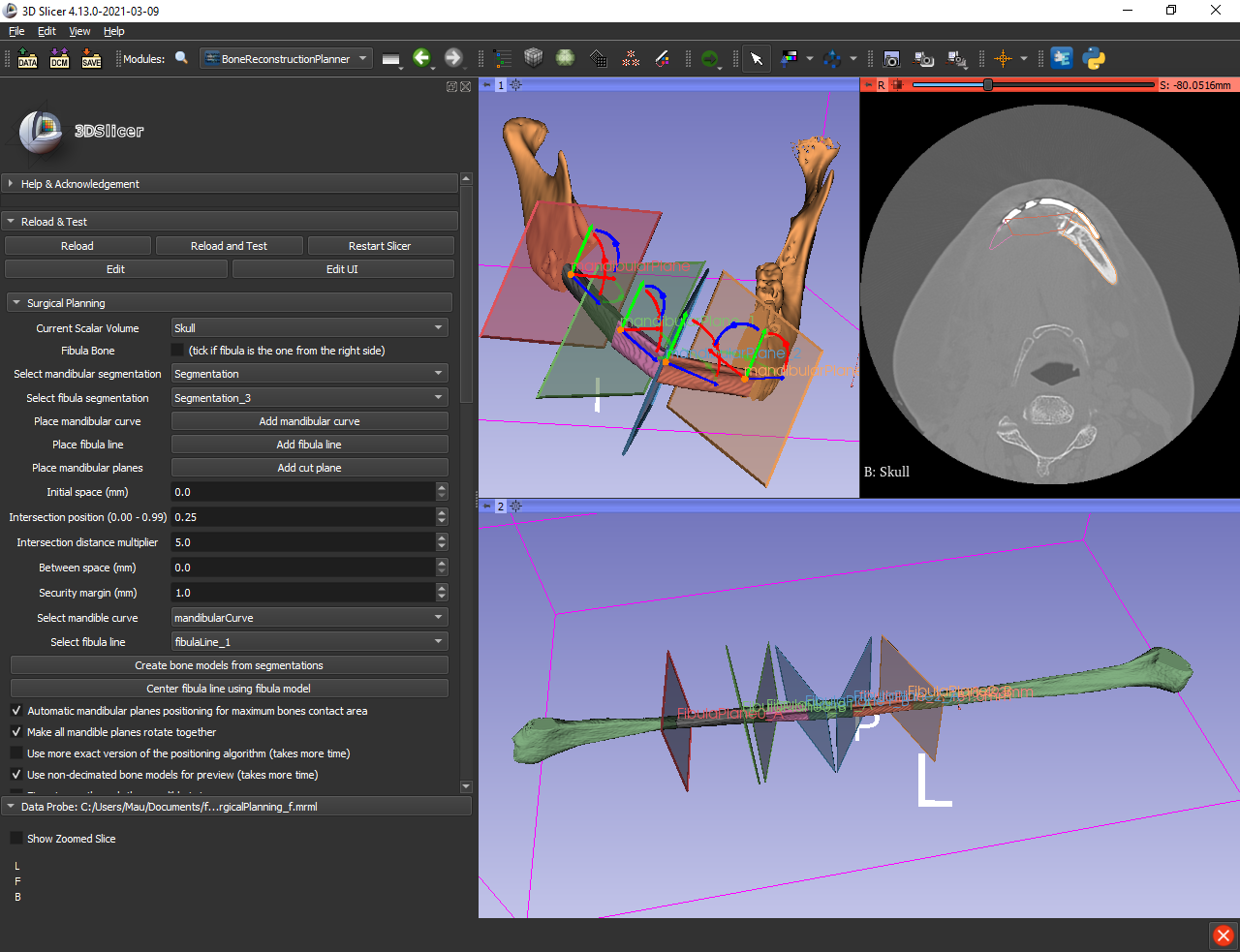 - BoneReconstructionPlanner for virtual surgical planning of mandibular reconstruction with vascularized fibula free flap and generation of patient-specific surgical guides.